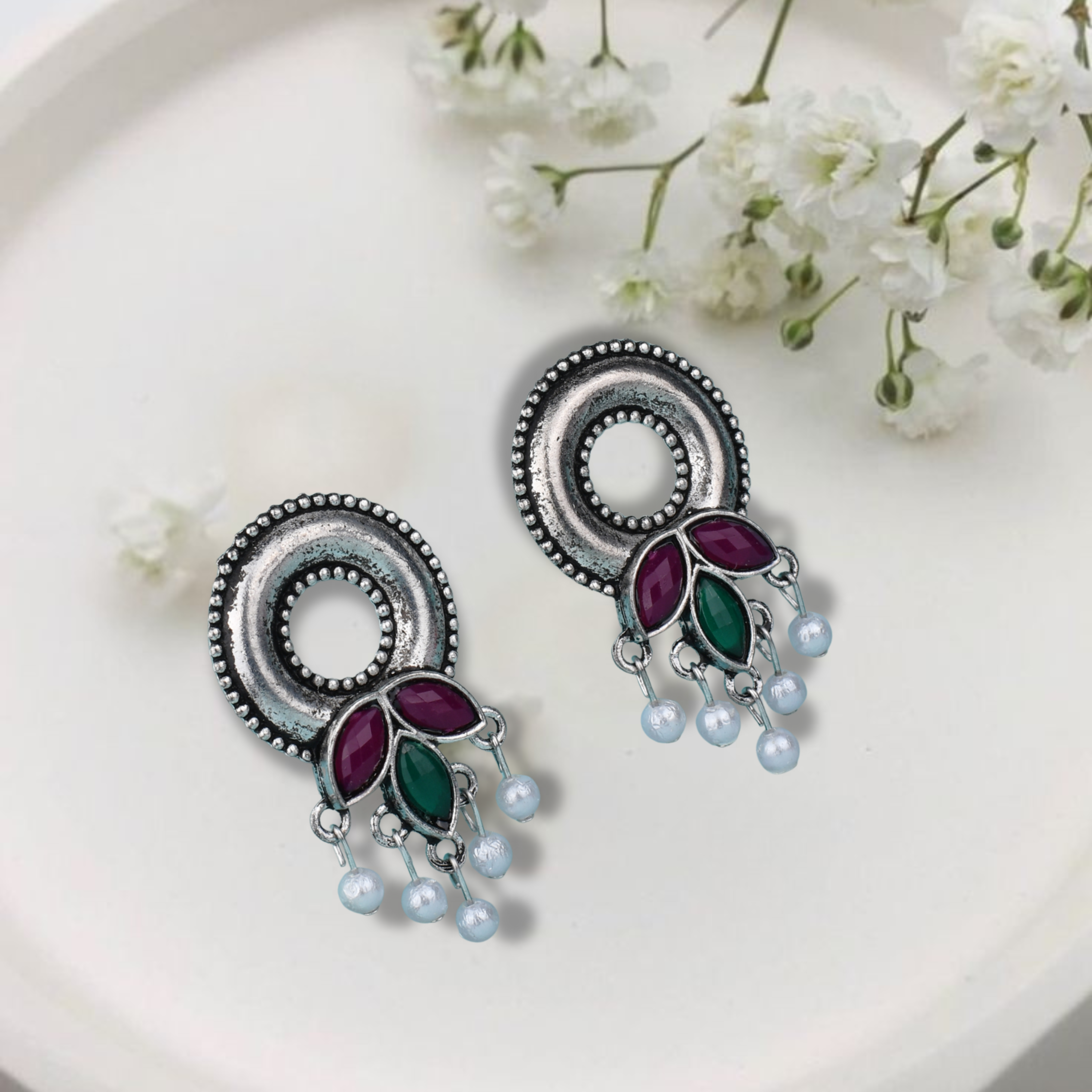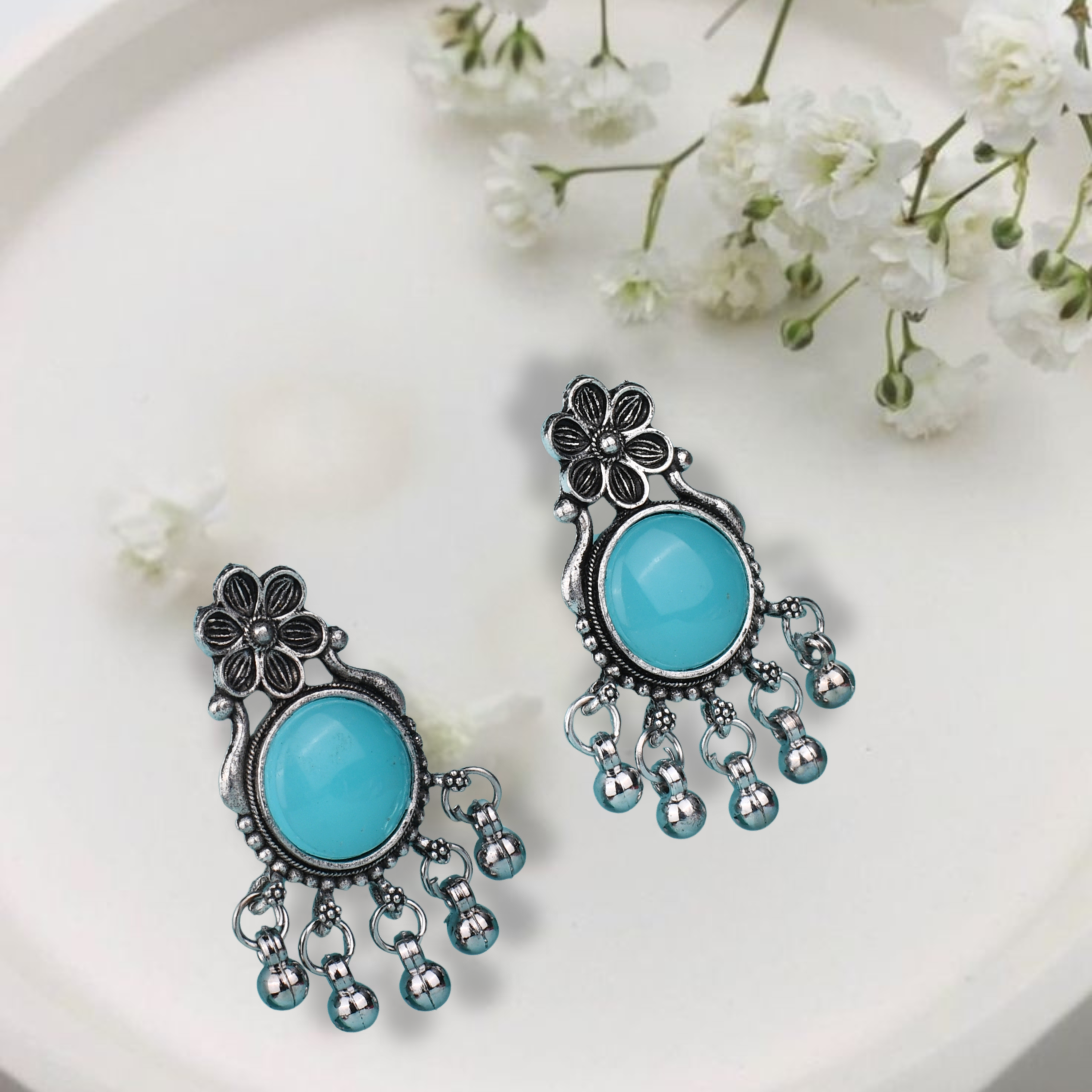 2. Turquoise Blossom Drops - Antique silver floral drops with turquoise stones—ideal for ethnic and Indo-western looks.