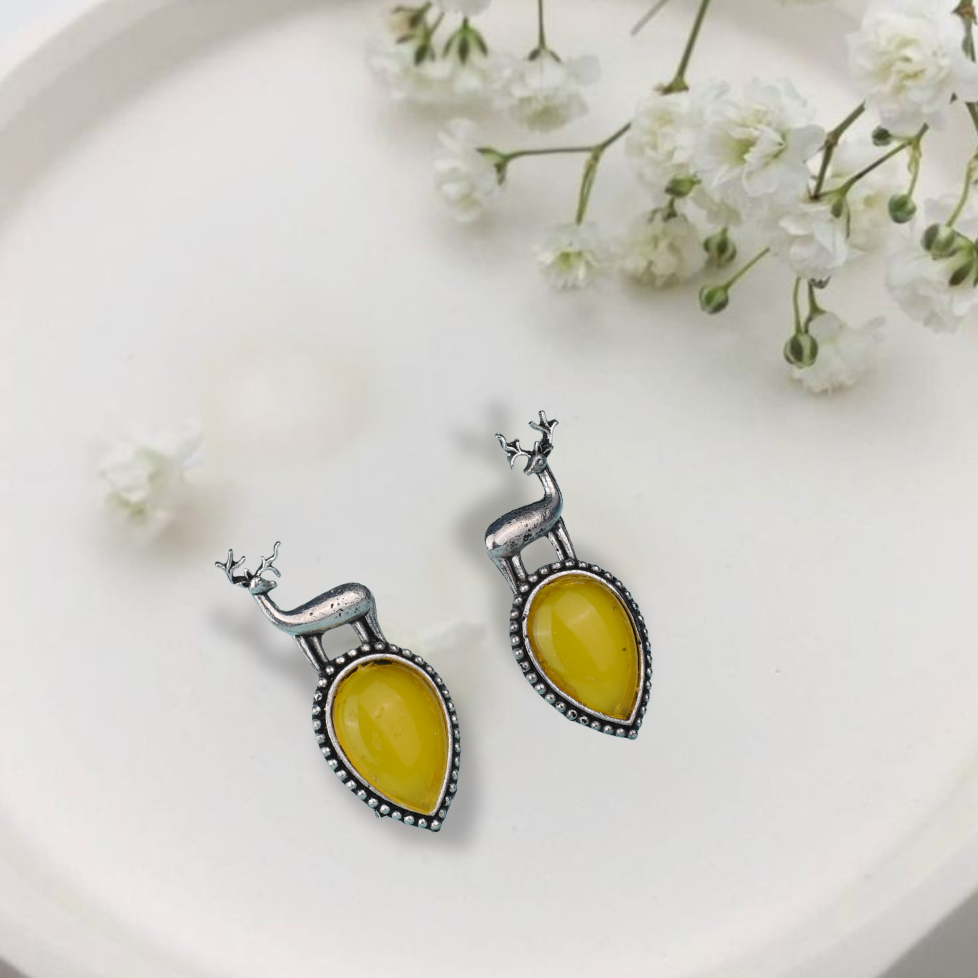 3. Yellow Deer Danglers - Bright yellow stone danglers with a vintage touch. These add instant freshness to any outfit.
